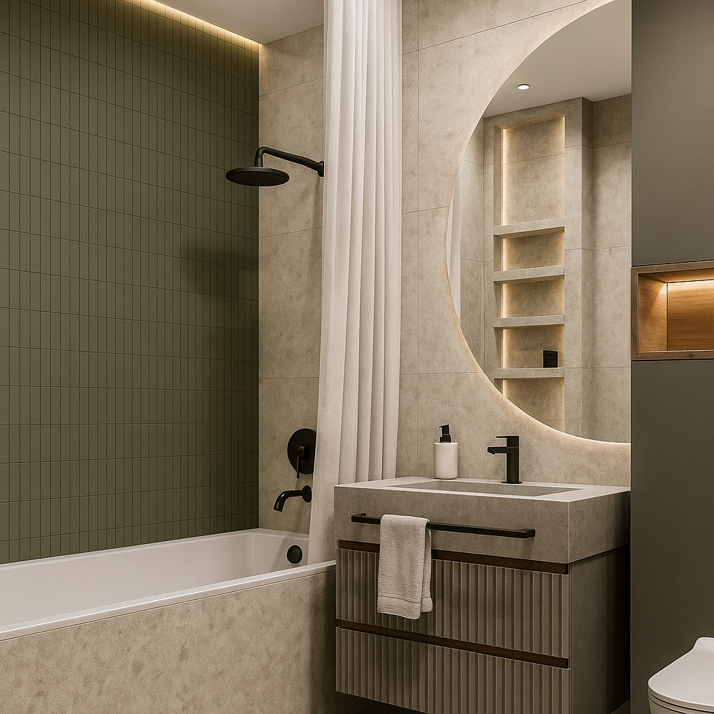 - Do łazienki – odporność na wilgoć, idealnie pasuje do nowoczesnych aranżacji